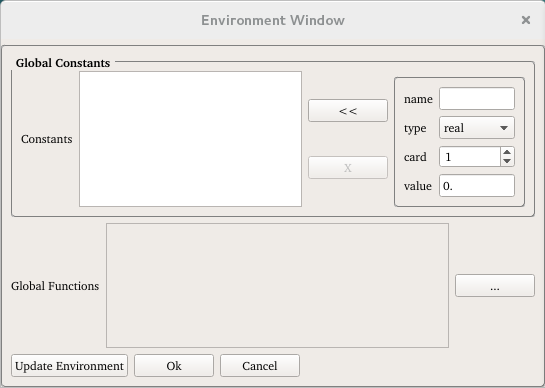 , the Environment Window appears. To define a constant, fill the fields of the global constants panel: