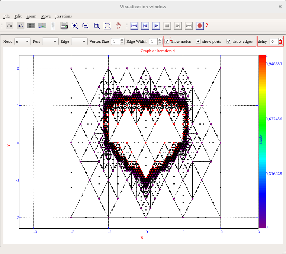 The visualization window enables to see the graph evolution over the iterations.