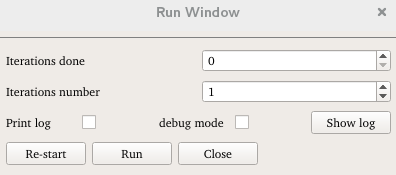 - The Show log button allows to see the log file on a text window.