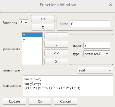 To add f as a global function, click on the ... button in the Global Functions area to make appear the Functions Window: