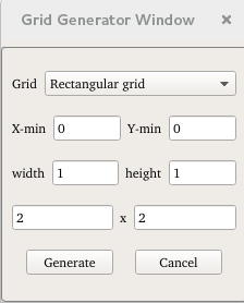 ![]() We would like to generate a grid in the rectangle [-2,2] × [-2,2] of the 2D-plane. We can do it by hands but we can use the generate grid item of the edit menu of the graph window: